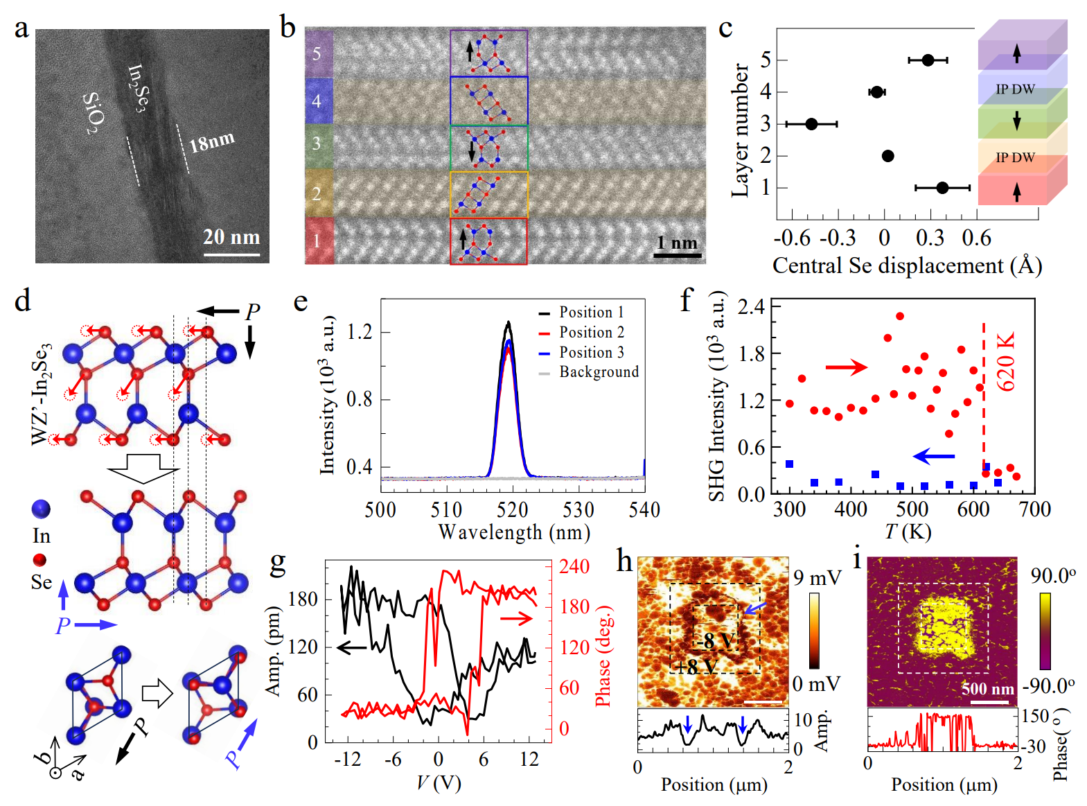 图2. 纤锌矿型α-In2Se3的微观结构与铁电性能表征