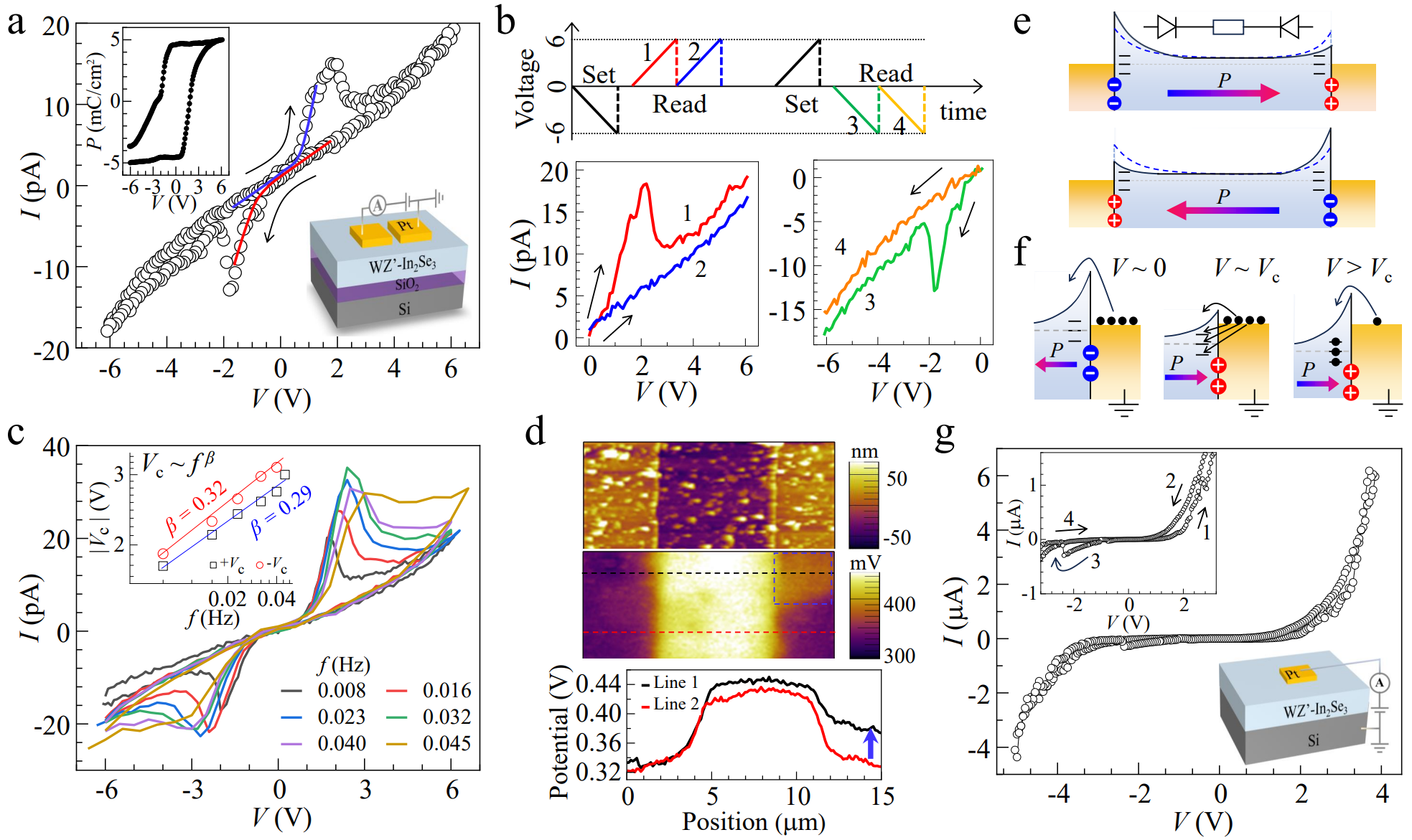 图4. 纤锌矿型α-In2Se3基两端器件的I-V特性与阻变行为