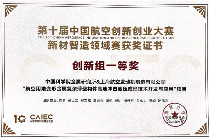 科研团队基于高应变速率增塑的材料特性,提出了一种全新原理的冲击液压成形技术,并研制出国内首台高速冲击液压成形精密装备。通过极高应变速率下的精确可控变形,解决了传统工艺难以兼顾成形精度、组织性能与加工效率的核心难题,在多家航空主机厂实现了典型产品的开发和应用,形成了集“材料—工艺—装备”于一体的系统性创新研究。该项目面向航空航天领域对高性能轻量化薄壁构件的重大需求,成功突破了钛合金、高强铝合金等难变形金属材料在复杂薄壁结构制造中的技术瓶颈。该研究项目先后获得了国家重点研发计划、国家自然科学基金委、中国科学院国际合作局等的立项支持,总体技术达到国际先进水平,并荣获了2024年度日内瓦国际发明博览会“金奖”。