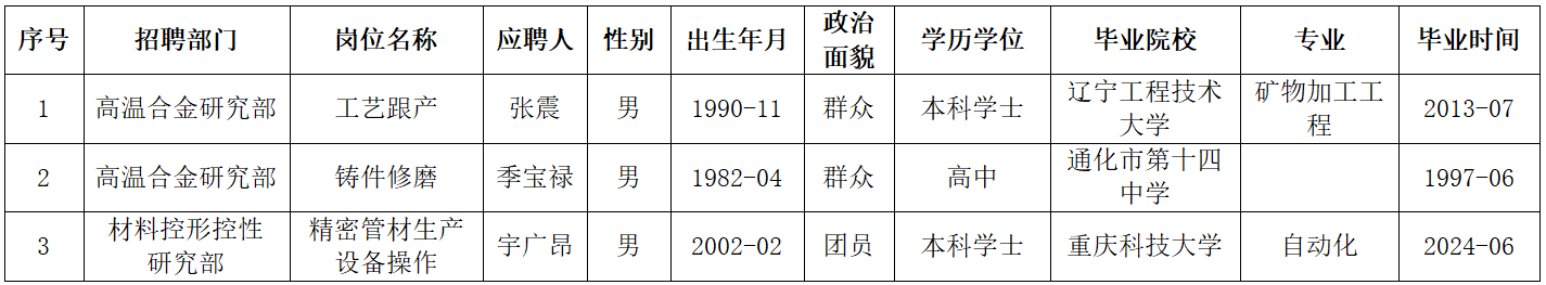 本次公开招聘涉及2个部门的3个岗位,共产生3名拟聘人员(详见附表)。