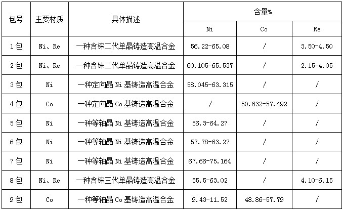 3.各包合金含量:基于商业保密协议,以下含量为修订后的含量,但与实际情况上下浮动不大。