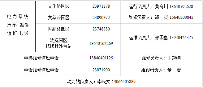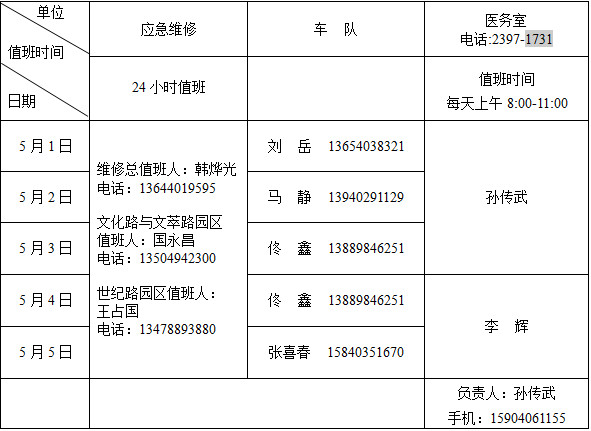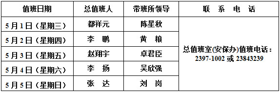 “五一”劳动节假期相关部门值班表