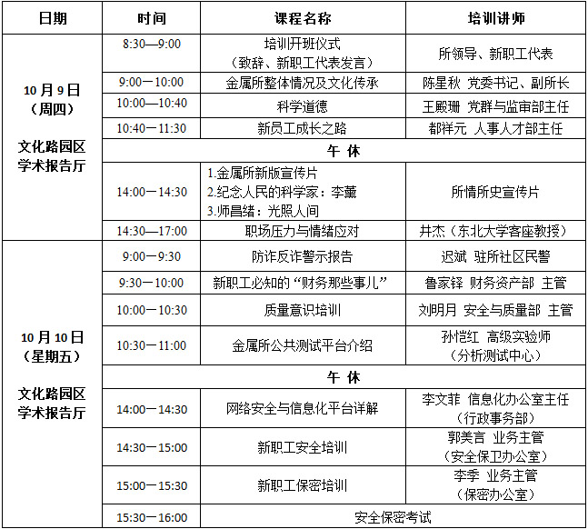 2025年度新员工入职集中培训—所情教育及拓展培训拟定于10月9日(周四)至10月11日(周六)举行,培训对象为自2024年10月1日以后入所人员(包括事业编制、特别研究助理、项目聘用人员、人才派遣人员;2025年项目聘用及特别研究助理转事业编制人员可自愿申请参训)。本次参训情况将作为新员工年终考核的重要参考,如有特殊情况不能参加,请在报名截止前向人事人才部联系人提交请假申请。