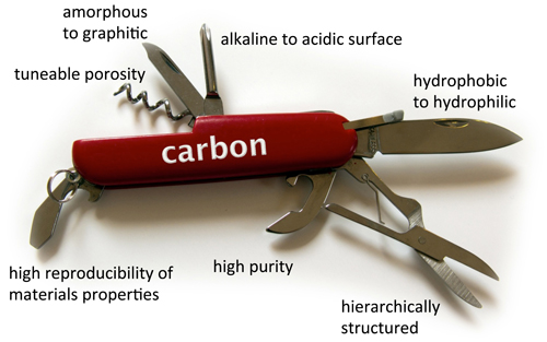 The synthesis of advanced functional materials is a key technology of modern industry. Carbonaceous material is of special fascination as it shows extremely variable material properties. These can be combined for nanomaterials and porous carbons with a huge surface area, allowing further functionalization. Promising applications of carbonaceous materials in chemical industry are the use as support in heterogeneous, electro- or bio-catalysis as also as adsorbent in gas separation and storage. The materials are mainly produced by reactive conversion of carbon containing feedstock and reactive post treatments like oxidations.