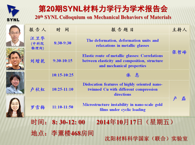 】第20期SYNL材料力学行为学术报告会