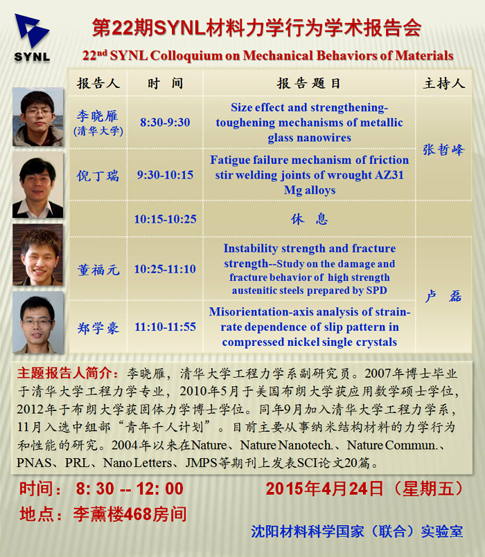 】第22期SYNL材料力学行为学术报告会