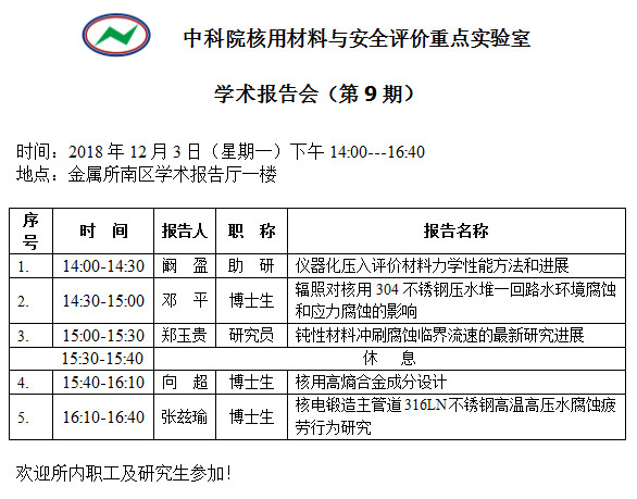 2018-11-28 | 文章来源:核用材料与安全评价重点实验室 【