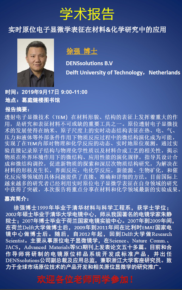 题目:实时原位电子显微学表征在材料&化学研究中的应用