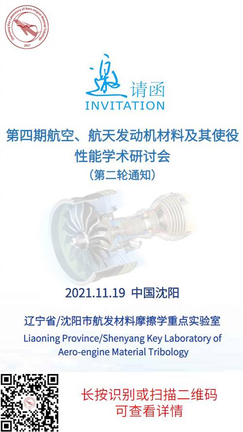 为更好地推动我国航空、航天发动机领域材料及其使役行为研究和学术交流,促进科技创新和工程应用,由辽宁省/沈阳市航发材料摩擦学重点实验室组织的“第四期航空、航天发动机材料及其使役性能学术研讨会”将于2021年11月19日在沈阳召开。会议邀请航空、航天发动机专家和高校研究所学者进行大会报告,欢迎高等院校、科研院所与企事业单位的专家学者积极参与会议交流与研讨。由于疫情原因,采用线上方式进行。