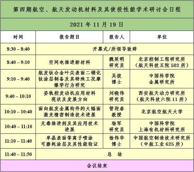 会议主题:航空、航天发动机新材料、新工艺及材料服役性能研究