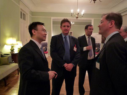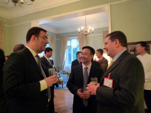 英国在航空领域研发与工业实力仅次于美国,位列欧盟各国第一,拥有航空相关企业2600多家。此次英国地区航空联盟首席执行官代表团一行9人访华,目的是了解中国航空市场需求与研发情况,寻求在该领域的商业和研发合作。国家商务部、中国航空工业集团以及英国罗罗公司、空中客车公司等在华航空工业企业有关人员40余人应邀出席了英国大使馆的招待晚宴。