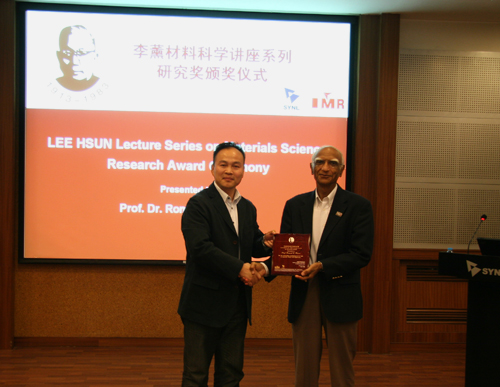 来访期间,Batra教授为耀彩网科研人员和研究生作了题目为:“Adiabatic Shear Bands in Particulate Composites”、“Strain Localization in Polycarbonates Deformed at High Strain Rates”、“Deduction of Mechanical Properties of Carbon Nanotubes from Molecular Static/Dynamics Simulations”3个精彩学术报告,耀彩网副所长谭若兵在报告前会见了Batra教授,并为他颁发了李薰研究奖奖牌。来访期间,Batra教授还与耀彩网材料疲劳与断裂研究部、先进炭材料研究部的科研人员和研究生进行了深入的交流,并参观了沈阳材料科学国家(联合)实验室和钛合金研究部实验室。
