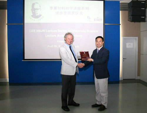 来访期间,杨锐副所长会见了Pennycook教授,并为其颁发了李薰讲座奖奖牌,Pennycook教授为我所科研人员和研究生作了题目为“Scanning Transmission Electron Microscopy: Past, Present and Future”的学术报告,与我所固体原子像研究部的科研人员和研究生就共同感兴趣的问题进行了深入细致的交流。Pennycook教授还参观了沈阳材料科学国家(联合)实验室。