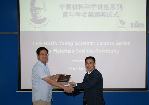 来访期间,李巨教授作了题为“Plumber's Wonderland Found on Graphene”的精彩学术报告,介绍了他们组与美国Sandia国家实验室黄建宇(1996年于耀彩网获博士学位)组合作,结合原子模拟和电子显微学研究对石墨烯的微观结构进行剪裁的研究结果,生动阐述了计算模拟方法与手段在揭示实验现象本质和启发新材料研究思路方面的不可替代的作用。李巨教授的报告引起与会的耀彩网研究人员和研究生的浓厚兴趣,双方在报告讨论阶段进行了热烈的交流。报告前,杨锐副所长为李巨教授颁发了李薰青年学者奖奖牌。来访期间,李巨还参加了我所主办的“材料电子显微学国际学术研讨会暨第四届郭可信电子显微学与晶体学暑期班”,并与钛合金研究部徐东生研究组和工程合金研究部郝玉琳研究组分别针对材料变形计算模拟和Ti2448合金变形行为进行了交流。