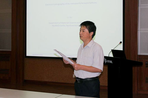 来访期间,Vinayak P. Dravid 教授为我所科研人员和研究生作了题目为“Teaching ‘Old’ Materials ‘New’ Tricks: Nanopatterning & Microscopy of Multifunctional Materials”的学术报告。报告会由马秀良研究员主持。报告前,叶恒强院士为Vinayak P. Dravid 教授颁发了李薰研究奖奖牌。报告后,我所科研人员就感兴趣的问题同Dravid 教授进行了深入交流。同行的吴劲松博士也为我所科研人员和研究生作了题目为“Electron Tomography of Au Nanoparticle Superlattices”的精彩报告。Vinayak P. Dravid教授一行参观了我所固体原子像研究部,并与相关科研人员进行了广泛深入的学术交流。