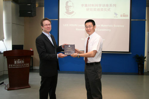 张健副所长为Staedler博士颁发李薰研究奖奖牌