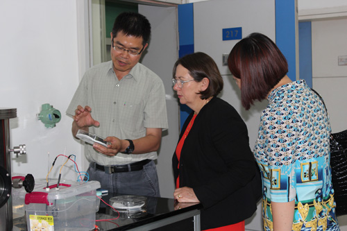 会面结束后,哈凯琳公参一行参观了我所先进炭材料研究部的光催化、电池检测实验室及材料加工模拟研究部的部分实验室。