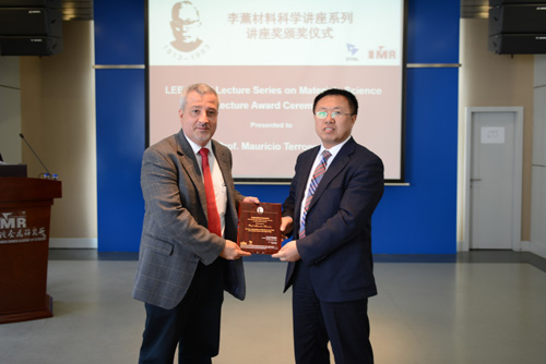 张哲峰副所长为Terrones教授颁发李薰讲座奖奖牌