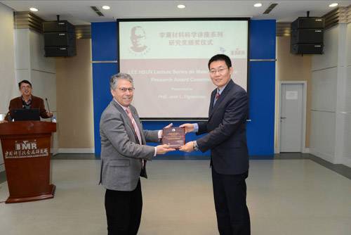 张健副所长为José L. Figueiredo教授颁发李薰研究奖奖牌