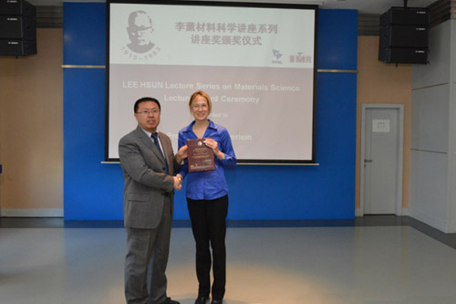 张哲峰副所长为Irene J.Beyerlein教授颁发李薰讲座奖奖牌
