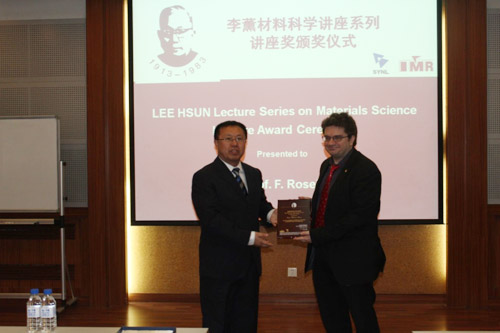 张哲峰副所长为F. Rosei教授颁发李薰讲座奖奖牌