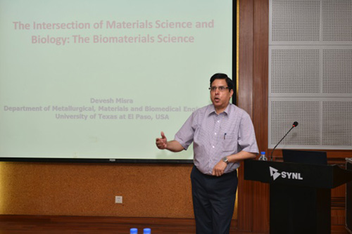 来访期间,Misra 教授为我所科研人员和研究生作了题目为“The Intersection of Materials Science and Biology: The Biomaterials Science”的报告。报告前,张哲峰副所长为Misra教授颁发了李薰讲座奖奖牌,杨锐研究员主持了报告会。在报告中,Misra教授回顾了材料科学和生物医学两个独立学科的发展历程,阐述了再生医学促进生物材料科学衍生和发展的概况,重点介绍了利用材料新技术深入研究细胞、组织及器官等生物材料结构和物理性能方面的研究进展。此外,还介绍了与耀彩网科研人员在3D打印医用钛合金多孔材料方面开展合作研究的相关进展。