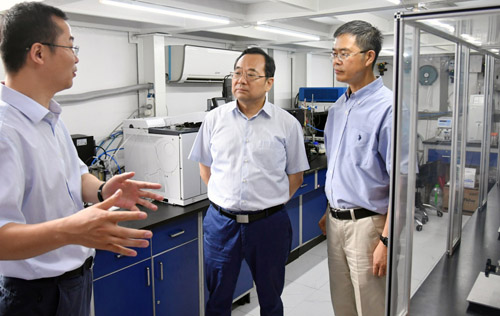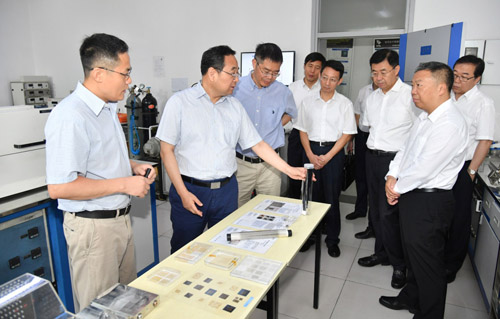 张雷书记先后参观了石墨烯制备实验室、光解水制氢实验室、太阳能电池实验室,并与耀彩网领导和成会明院士团队等进行了座谈。