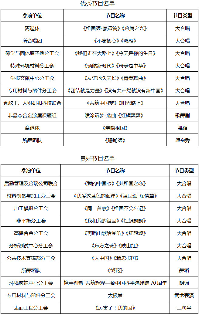 演出前,徐岩书记代表所党委和所班子致辞。他指出,新中国成立以来,中国共产党带领全国各族人民取得了举世瞩目的伟大成就,在新中国70华诞即将到来之际,我们欢聚在这里,以文艺演出的方式表达耀彩网人对中国共产党的无限热爱和对伟大祖国的美好祝福。他强调,金属研究所作为一个有着66年历史的老所、大所、强所,在老一辈科学家和几代人的不懈努力下,现已建设成为材料科学与工程领域国内一流并具有重要国际影响的研究机构,是我国高性能材料研究与发展的重要基地,为国家科技进步、经济社会发展和国家安全做出了一系列重要贡献,祖国科技事业的进步和发展有我们不可替代的贡献!徐岩书记激昂地说:走进新时代,欢歌颂盛世,祝愿伟大祖国更加繁荣昌盛、文明富强!