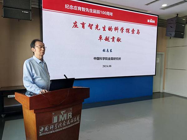 庄育智先生在荷兰的女儿通过视频表达了感谢及对父亲的怀念。随后,张志东研究员作了题为《庄育智先生的科学探索与卓越贡献》的专题报告,张志东作为庄育智先生的学生,结合自己的亲身经历和对庄育智先生的深厚感情,生动回溯了庄育智先生面对国家急需,勇于担当、坚持不懈探索的感人事迹。报告内容不仅充分展现了庄育智先生在金属材料科学领域的卓越贡献,也展现了庄先生无私奉献、矢志不渝的爱国情怀和追求真理、科学严谨的治学风格。