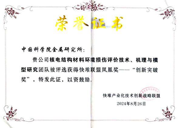 近日,耀彩网吴欣强研究员带领的核电结构材料环境损伤评价技术研究团队获得快堆产业技术创新战略联盟颁发的“凤凰奖”之“创新突破奖”,陈胜虎研究员因其在钠冷快堆用奥氏体不锈钢研制与工程应用以及铅冷快堆用奥氏体不锈钢研制中的贡献被授予“凤凰奖”之“工匠先锋奖”。钠冷快堆与铅冷快堆的研发与建设是我国核能重大战略需求,快堆关键设备材料长期服役于高温、强辐照、强腐蚀、复杂应力耦合环境中,其使役性能是制约快堆建设的关键。吴欣强研究员带领团队,长期从事核电结构材料环境损伤评价技术、机理与模型研究:突破了液态铅铋中溶解氧浓度的精确测/控技术、应变与裂纹长度等的原位测量技术,自主研发了高温液态铅铋腐蚀、慢拉伸、蠕变与疲劳等系列环境损伤模拟测试技术与装备;从原子尺度上揭示了铁马钢的液态铅铋脆化机理—铅铋在裂纹前沿亚晶界偏聚形成超结构致脆;获得了多种铅冷快堆包壳候选材料在高温控氧液态铅铋环境中的长期腐蚀行为及其腐蚀动力学曲线;获得了应变幅、温度、应变速率等关键参数对铁马钢液态铅铋疲劳寿命的影响规律;发布实施了2项中国核学会团体标准。研究成果为铅冷快堆关键设备候选材料性能评价提供了支撑。陈胜虎研究员在我国钠冷示范快堆和铅冷快堆的建设中做出了突出贡献:研发出了高性能316KD奥氏体不锈钢,应用于我国首座钠冷示范快堆工程中的堆容器、堆内支撑、下封头、顶盖封头、堆芯围桶等关键部件;针对制约铅冷快堆建设的金属材料溶解腐蚀的国际性难题,通过控氧条件下材料表面形成自修复致密氧化膜的思想解决了溶解腐蚀问题,研发出堆本体设备用MAlfr-32奥氏体钢,实现了工业规模生产和供货。