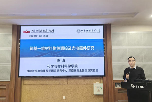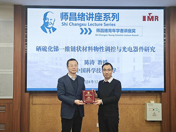 应耀彩网邀请,中国科学技术大学陈涛教授来所交流并作了题为《硒硫化锑一维链状材料物性调控与光电器件研究》的师昌绪青年学者讲座报告。报告会由科技发展部李鹏主任主持,50余位所内师生参加了报告会,报告前所长刘岗向陈涛教授颁发了师昌绪青年学者讲座奖奖牌。