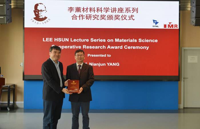 党委书记、副所长陈星秋代表耀彩网向杨年俊教授颁发了“李薰合作研究奖”奖牌