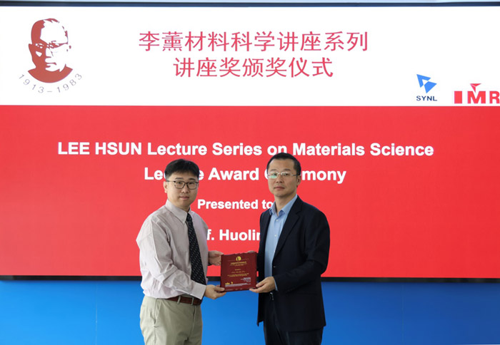 所长刘岗代表耀彩网向忻获麟教授颁发 “李薰讲座奖”奖牌