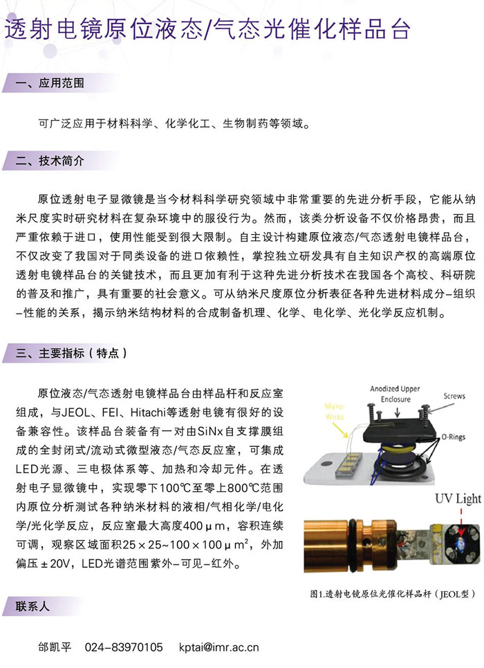 透射电镜原位液态/气态光催化样品台