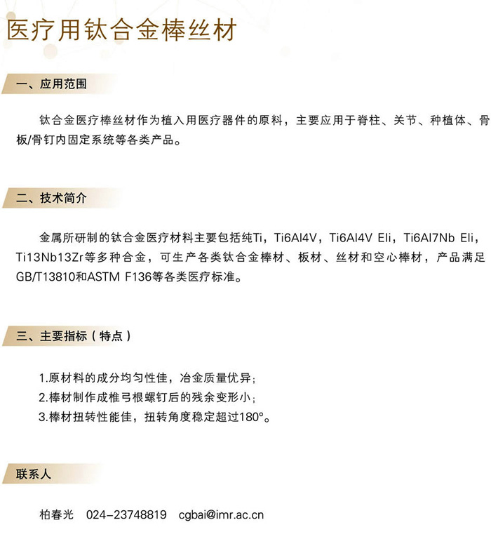 医疗用钛合金棒丝材