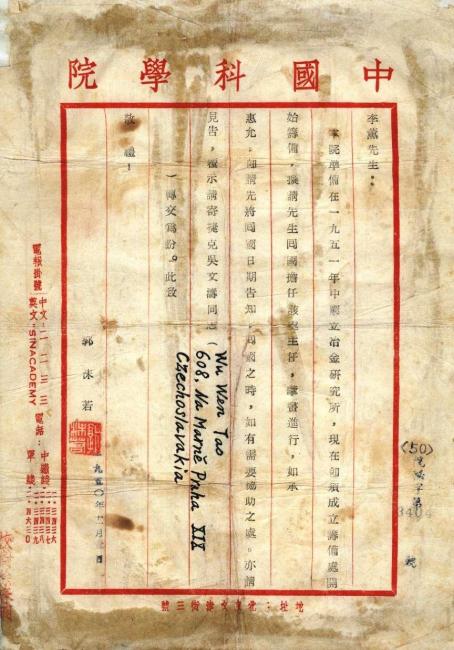 1943年7月英国牛津中国留英同学会合影(三排右二) 新中国成立不久,时任中国科学院院长郭沫若写信邀请李薰先生回国创建冶金研究所,面对英国谢菲尔德大学多位领导升职加薪的挽留,加入英籍的许诺,李薰明确地回答:“我永远是中国人。”