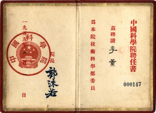 1955年当选中国科学院首届学部委员(1993年起学部委员改称为院士)