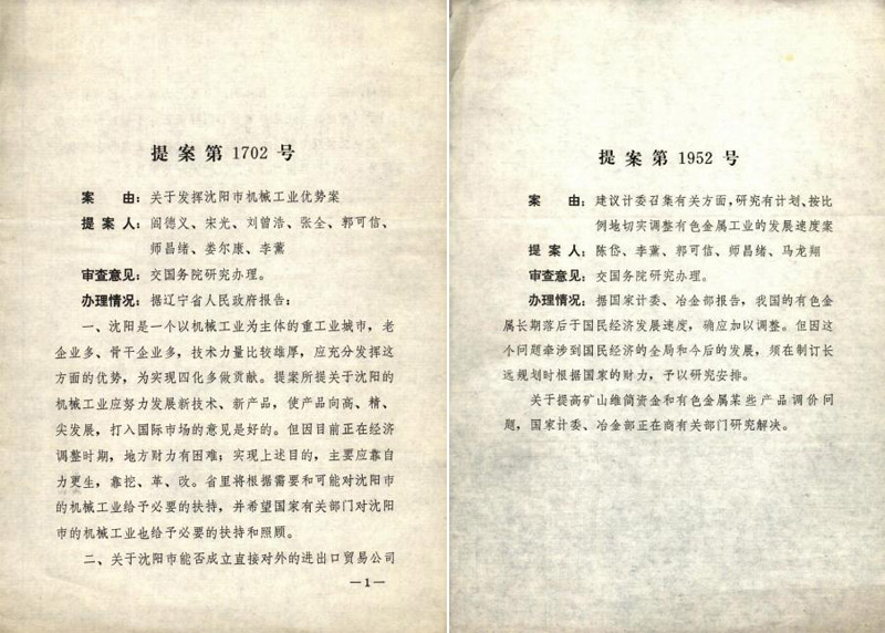 李薰参加历届人大会议提交的部分提案办理情况原稿
