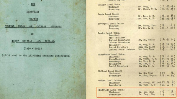 1950-51留英同学会名册(谢菲尔德分会主席为李薰、秘书为方柄,米德兰分会主席为柯俊)