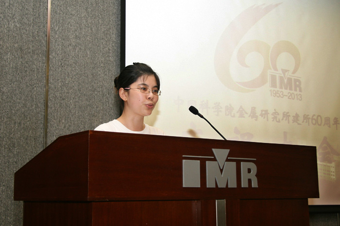 在建所60周年庆祝大会上,2011级博士生王晓欣同学代表在学研究生发言