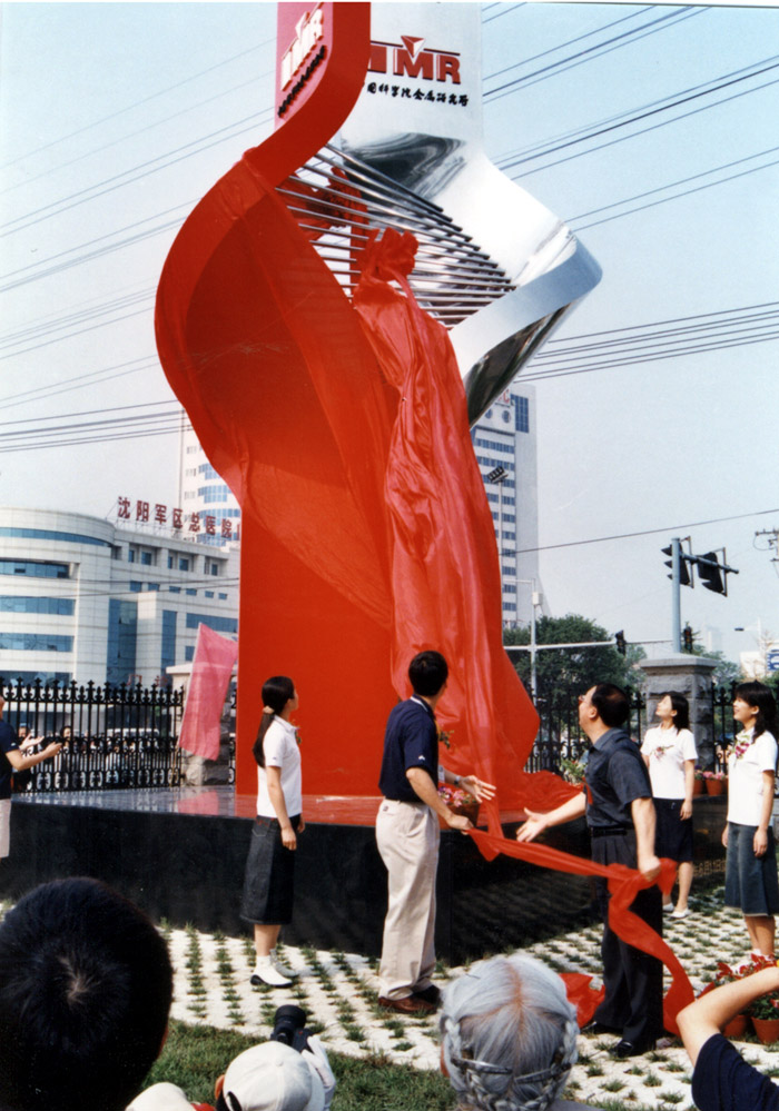 2003年6月所庆五十周年庆祝活动--沈阳分院院长王庆礼和卢柯所长共同为我所标志性建筑揭幕。