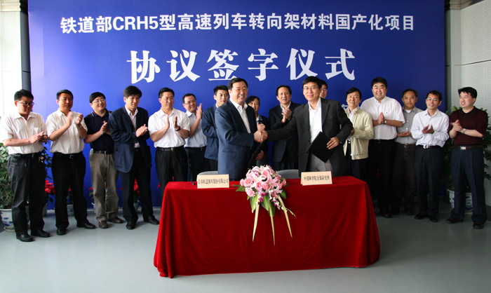 2007年5月25日耀彩网承担长春轨道客车股份有限公司“CRH5型高速列车转向架材料国产化项目”协议签字仪式在耀彩网举行。