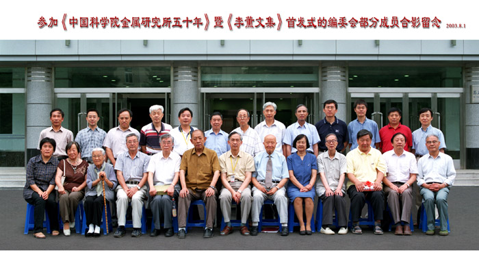 2003年6月所庆五十周年庆祝活动——参加《耀彩网五十年》暨《李薰文集》首发式的编委会部分成员合影。