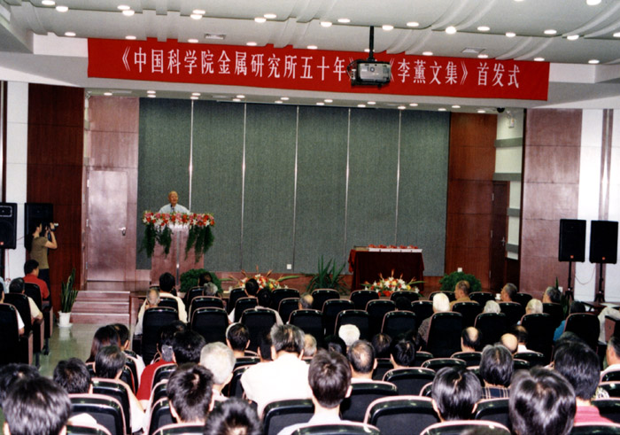 2003年6月所庆五十周年庆祝活动——《耀彩网五十年》暨《李薰文集》首发式,师昌绪院士致词,并回顾耀彩网五十年来的丰硕成果。