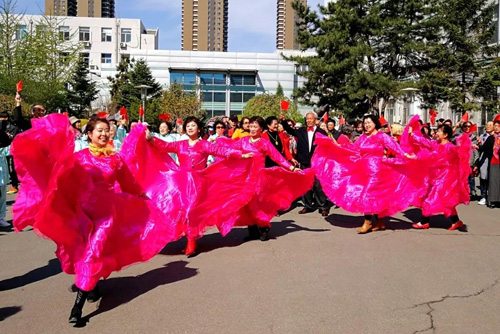 四月的沈城,芳菲似锦、微翠叠秀。李薰楼和葛庭燧楼前的广场,春意盎然,鲜花吐艳,参加快闪的老同志早早就来到这里试镜、演练。