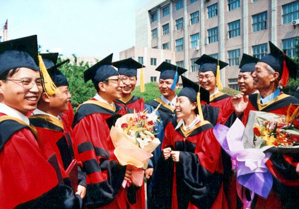 1999年获得学位的学生们与导师胡壮麒院士、周本濂院士亲切交谈,笑逐颜开。