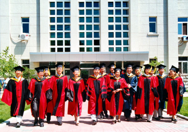 2002年朝气蓬勃的学子和李依依院士、胡壮麒院士在一起