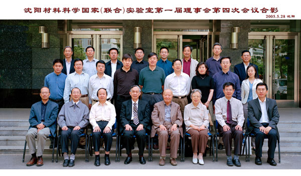 2005年沈阳材料科学国家(联合)实验室“第一届理事会第四次会议”在我所召开。理事会专家、领导和实验室各研究部主任合影留念。前排:胡壮麒院士(左二)、叶恒强院士(左四)、师昌绪院士(左五)、卢柯院士(右一);中排:左起/佟百运、徐坚,张志东(右二);后排:左起/谢天生、周延春、张哲峰、李守新、杨锐、王中光,李斗星(右一)