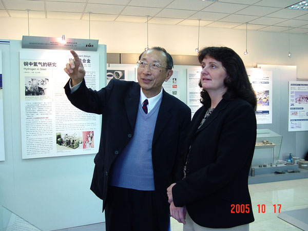 2005年国际高温合金领域知名学者、美国工程院院士、美国密歇根大学材料科学与工程系Tresa M.Pollock教授到我所访问,并荣获“李薰讲座奖”。胡壮麒院士陪同来访客人参观科技成果展室