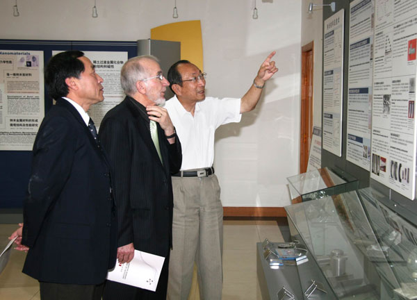 2007年新西兰奥克兰大学化学与材料工程系主任G. Ferguson教授和高唯教授应邀来所访问。胡壮麒院士陪同G. Ferguson教授和高唯教授参观所科技展室并作简要介绍